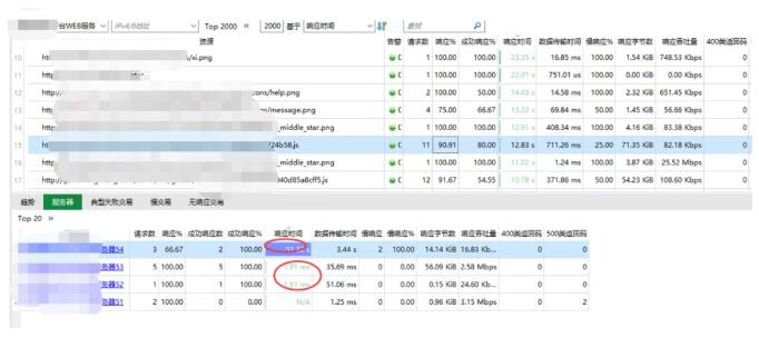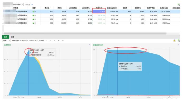 此外,從HTTP應(yīng)用性能分析模塊回溯數(shù)據(jù),發(fā)現(xiàn)同一個(gè)URL有的不同服務(wù)器提供服務(wù),對比各個(gè)服務(wù)器的響應(yīng)時(shí)間,發(fā)現(xiàn)只有“xxx.xxx.xxx.54”這個(gè)服務(wù)器的響應(yīng)時(shí)間異常。