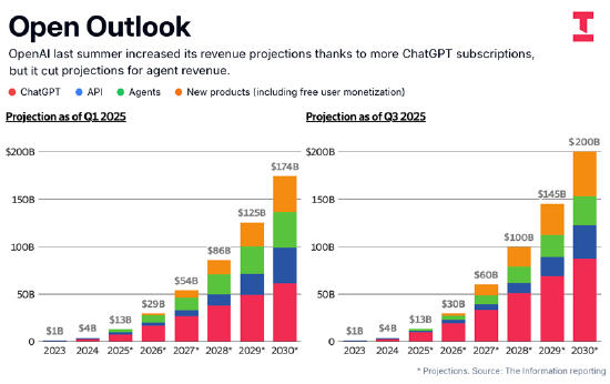 值得注意的是,OpenAI 的部分業(yè)務推進并不順利。例如,該公司去年將智能代理工具的營收預期削減了一半,預計 2025 年相關收入為 14 億美元。知情人士透露,2024 年 7 月,OpenAI 為 ChatGPT 訂閱用戶推出了智能代理功能 ChatGPT Agent,支持用戶創(chuàng)建和編輯電子表格及演示文稿,但該功能的實際表現(xiàn)未能達到部分內(nèi)部考核指標,比如未能實現(xiàn) “覆蓋 10% 的 ChatGPT 周活躍用戶” 這一目標。