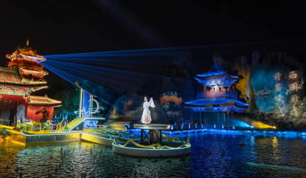 科視Christie激光投影機為《開封府·南衙千秋月》夜間文化演出呈現(xiàn)震撼的山體與水幕畫面