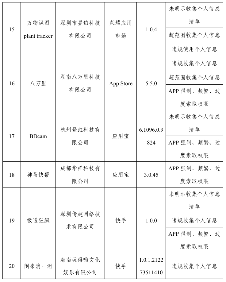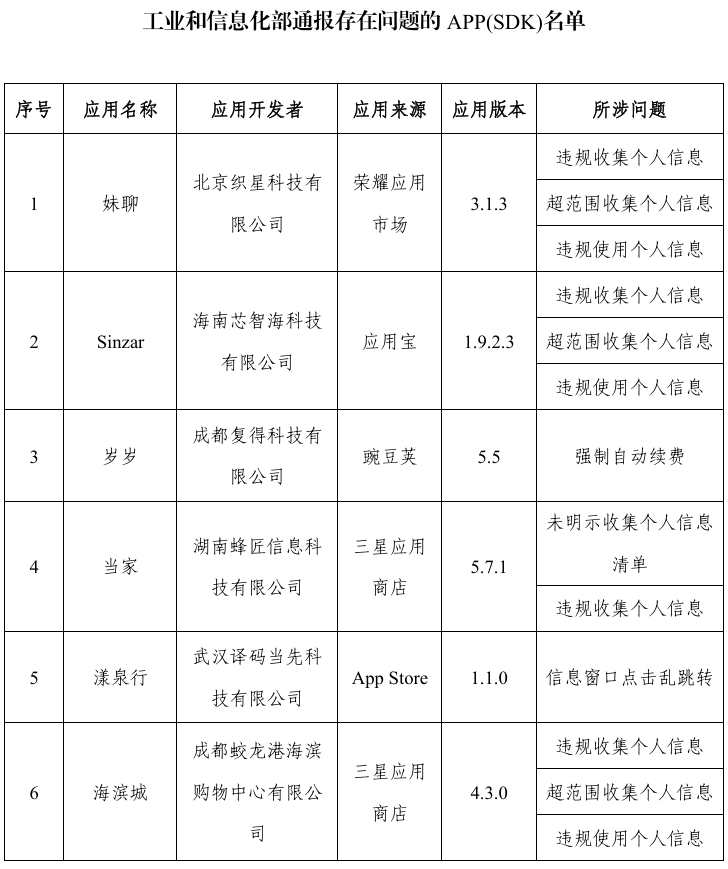 工信部通報22款侵害用戶權益行為APP(SDK)