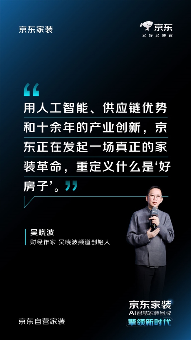 吳曉波表示,好房子需要好裝修,好裝修需要好模式。他也非常期待,京東發(fā)起的這場家裝革新,能在2026年為行業(yè)帶來全新的改變。