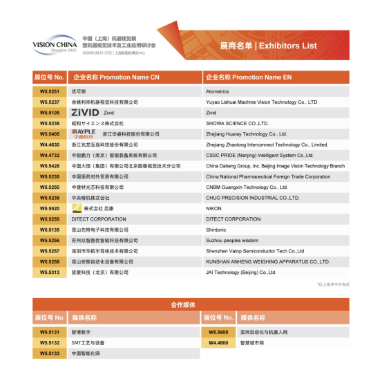 Vision China 2026(上海)展商名單及展位圖公布!
