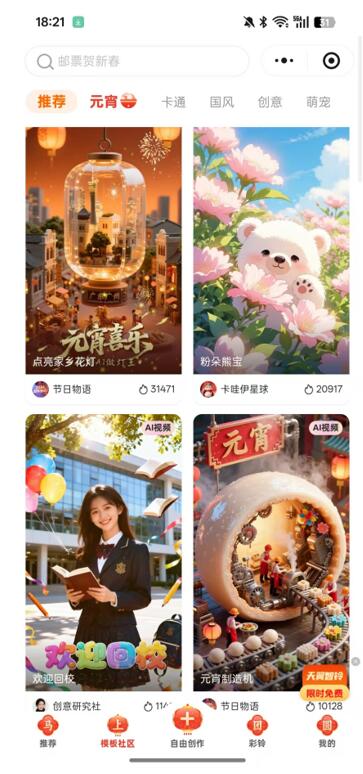 微信搜索并打開“天翼智鈴”小程序,海量模板庫任你挑選:國潮風韻、萌寵治愈、卡通趣味……風格百變,總有一款擊中你的“心巴”。更有馬年專屬、元宵主題創(chuàng)意模板扎堆上線,花燈映月、湯圓滾滾、闔家團圓等元宵經(jīng)典元素氛圍感拉滿。一鍵復制模板即可快速使用,也能隨心修改文案,輕松打造貼合節(jié)日氛圍的專屬彩鈴,讓來電等待瞬間充滿新春元宵的喜慶氣息,創(chuàng)作門檻一降再降,人人都能輕松上手!